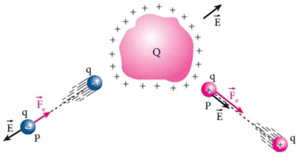 - Una carga eléctrica puntual q (carga de prueba) sufre, en presencia de otra carga q1 (carga fuente).