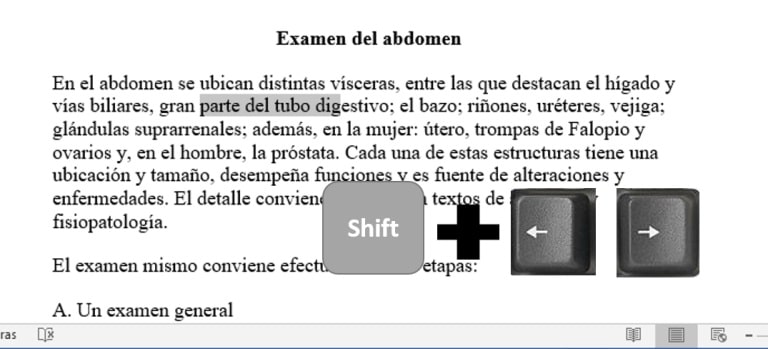 - Luego de ello, de manera simultánea se debe seleccionar el texto que se desea, esto se debe hacer con el botón izquierdo del mouse