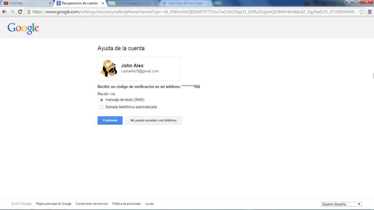 - En el caso de que pulsemos aquí, Google tratará de confirmar que la cuenta sea nuestra de varias maneras, como un mensaje con un código al teléfono, responder alguna pregunta de seguridad o copiar un enlace que fue enviado en nuestro correo.