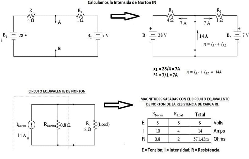 - El circuito se puede sustituir por su equivalente Norton.